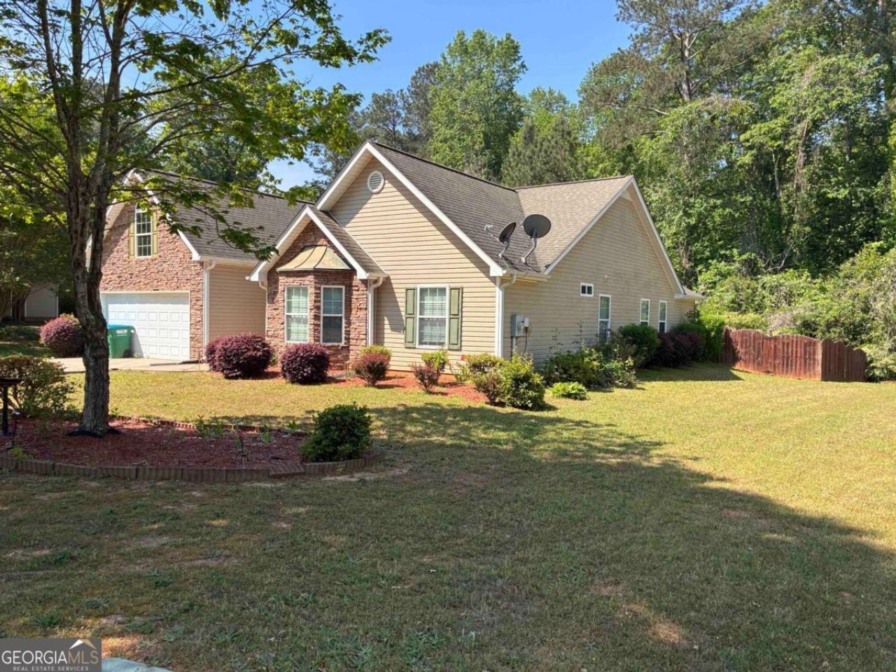 Welcome to the perfect blend of charm and convenience! This beautiful ranch-style home in the quiet Peachtree Park community offers seamless single-level living. Inside, you'll find airy interiors flooded with natural light, vaulted ceilings, and a cozy stone fireplace perfect for chilly evenings. The thoughtfully designed layout includes a primary suite on the main level with a double vanity and walk-in closet. Situated on a private, cul-de-sac lot with a fenced backyard, this home is ideal for both peaceful retreats and outdoor entertaining.