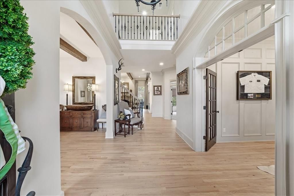 They truly do not make them like this anymore. This stunning four-sides brick French-inspired home blends timeless architecture with beautiful updates, incredible entertaining space, and the kind of charm buyers chase but rarely find. From the moment you arrive, the wrought iron and wood detailing, painted brick exterior, and double French doors with peekaboo windows set the tone.Inside, a dramatic two-story foyer welcomes you with refinished hardwood floors throughout the entire main level, custom lighting, and elegant, thoughtfully designed spaces. The private office with built-ins and French doors is both functional and beautiful, while the oversized dining room and butler's pantry make entertaining easy. The chef's eat-in kitchen is the heart of the home, featuring a Viking cooktop with stone surround and vent hood, custom cabinetry with plate racks and pullouts, a hidden walk-in pantry, and an oversized island overlooking the gorgeous fireside family room.The main level also offers a flexible guest suite with full bath that works equally well as a playroom or private bedroom. Upstairs, the oversized primary suite is a true retreat with its own fireplace and a newly renovated spa bath complete with soaking tub, seamless glass shower, double vanity, and a massive walk-in closet. Secondary bedrooms are anything but secondary, including a vaulted suite with millwork and private bath, a bedroom with a newly renovated bath and built-in daybed, and an oversized additional bedroom with painted hardwood floors, ensuite bath, and attached playroom or bonus space.The completely renovated terrace level adds even more lifestyle space with a TV room, game room, bar, gym, bedroom, and full bath. From the painted brick and shiplap accents to the LVP flooring and statement doors, every inch has personality and style.And then there's the backyard. Absolute paradise. A covered porch with decorative fireplace and porch swing overlooks the saltwater pool & hot tub. Best year round cabana with built in heaters, bar and grill perfect for relaxing and entertaining. There is also an upper yard area ideal for a firepit or playset, plus incredible landscaping, lighting, and full fencing for privacy.With a new roof, new paint, tankless water heater, landscaping galore and three-car garage, All of this inside a security guard-gated community with optional golf and country club amenities, swim and tennis, and access to top-rated Lambert schools.This one is the full package.